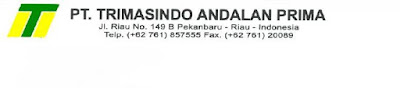 Berikut ini kami sampaikan informasi terkait lowongan kerja di PT. Trimasindo Andalan Prima Pekanbaru termasuk juga persyaratan dan berkas lamaran apa saja yang harus di serahkan dalam mengajukan lamaran kerja ke PT. Trimasindo Andalan Prima Pekanbaru.